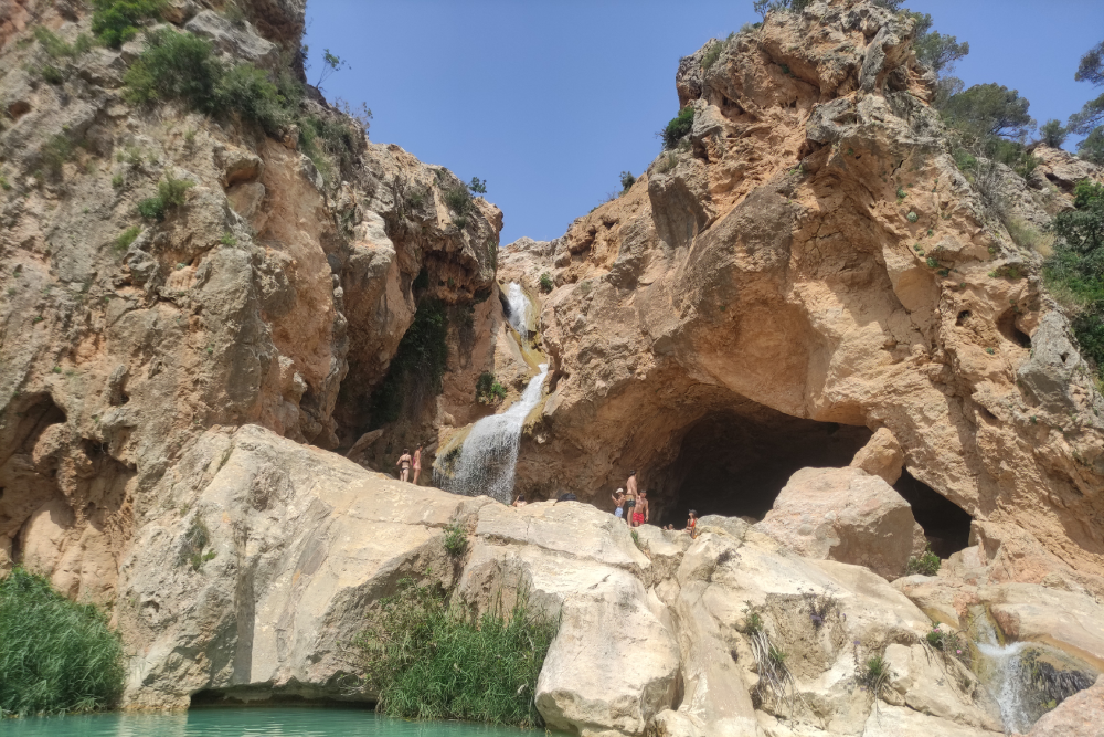 Ein kleines Häuschen außerhalb eines ruhigen Ortes nahe Valencia, eingebettet in staubige Wege und verwitterte Landschaft. Die Sonne steht hoch, die Luft flimmert, und der Pool schimmert verlockend bei fast 30 Grad. Der Hund liegt entspannt im Schatten der Veranda, während aus dem Hühnergehege ein leises Gackern dringt.