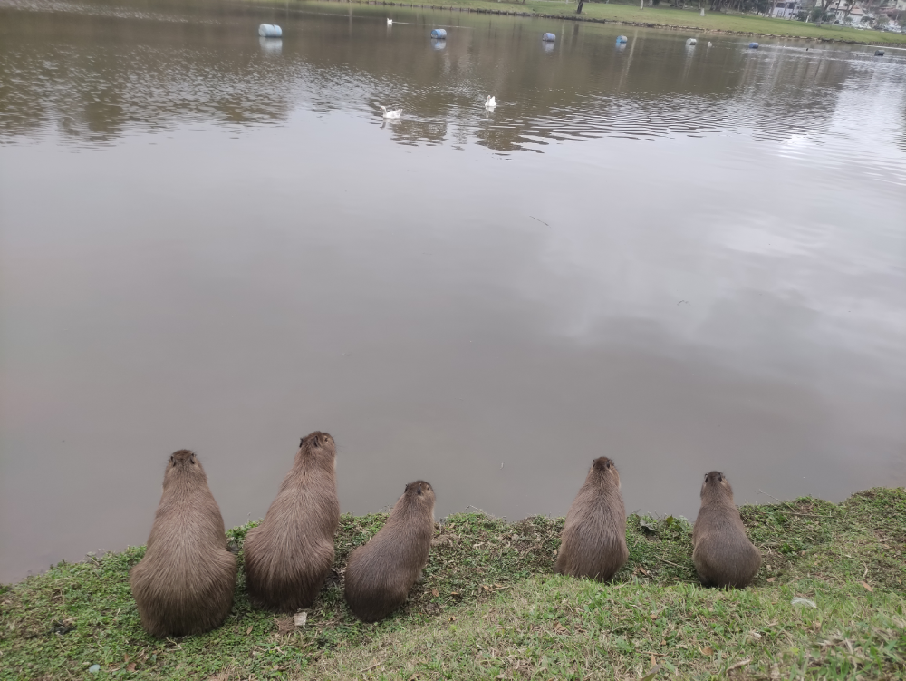 Dort sahen wir zum ersten Mal in freier Natur Capybaras, die größten Nagetiere der Welt. Sie leben in Brasilien an Seen und Flussufern. Sie sind friedliche und soziale Tiere, die uns sehr faszinierten. Außerdem gibt es im Park einen kleinen Freizeitpark mit einem großen Riesenrad. Wir unternahmen eine Fahrt mit dem Riesenrad und genossen die tolle Aussicht auf die Stadt und den See darunter.