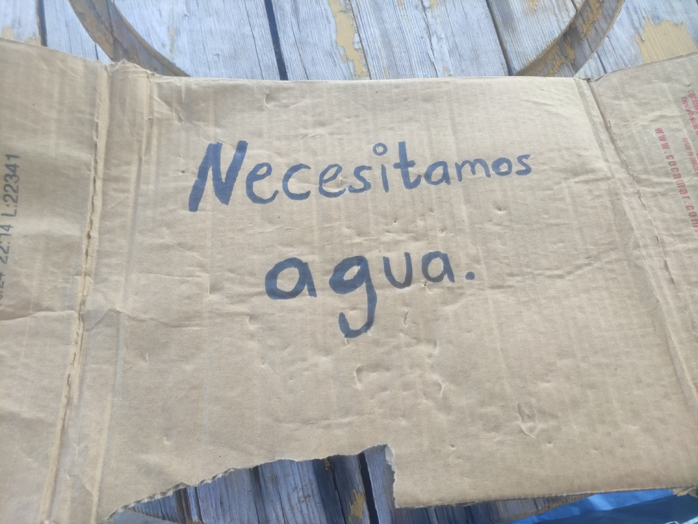 Nach langem Warten suchten wir im Müll beim geschlossenen Restaurant nach einer Lösung und fanden tatsächlich ein Stück Pappe. Daraus bastelten wir uns ein Schild mit der Aufschrift „necesitamos Agua“ / „wir brauchen Wasser“. Die Hilfsbereitschaft war überwältigend: Durch das Schild hielten Fahrer an und wir bekamen Wasser geschenkt, teils sogar eisgekühlt mit Eiswürfeln, und zusätzlich einige eisgekühlte Orangen. Diese Gaben retteten uns den Weg zum Warmshowers-Host.